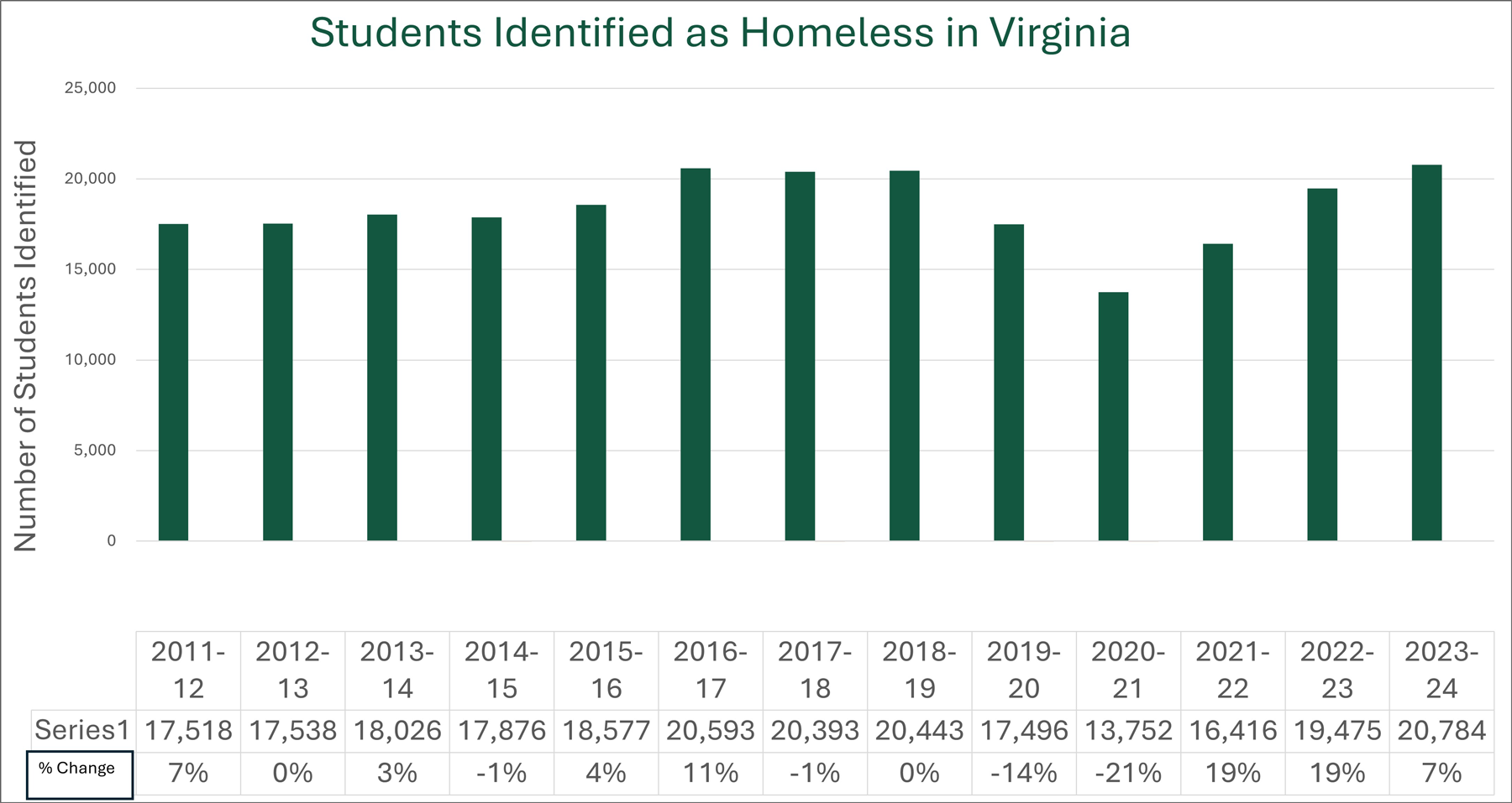 - Virginia EHCY Data: This page from the National Center for Homeless Education presents Virginia data on students experiencing